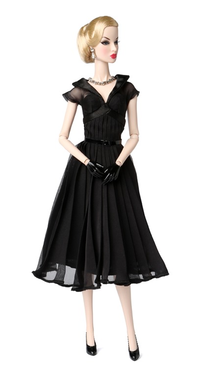I admit…I was one of those that paid attention more to the sketch than the reference to the movie on this one.  I was thinking Eugenia was going to be brunette.   Well “Duh” Rebecca…the actress this design was channeling was Grace Kelly!  Grace, is blonde.  Guess I should have known.  Other than the fact that this is the third blonde in a black dress from IT this month, I LOVE her.  Even though I am kind of disappointed in the blonde version ( would have preferred raven on this one), I am still buying.  I will immediately switch out the silver necklace for pearls but the dress is out of the park gorgeous.