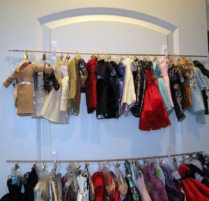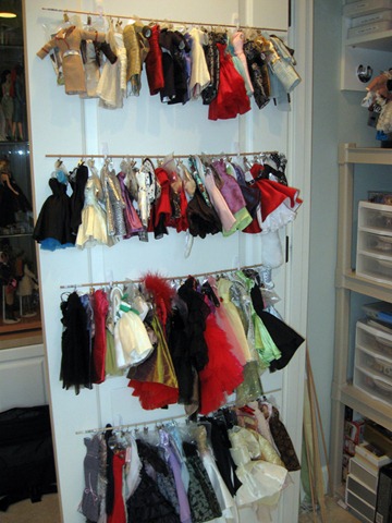 The hanging system on the back of the door allows me to hang the big ball gowns without wrinkling the skirts.