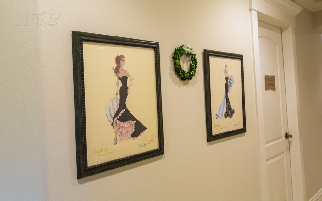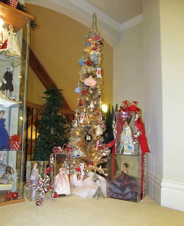 The holidays are always big in our home. Some holidays we are entertaining every weekend. This year, with my little ballerina in the PNB Nutcracker, things are a bit more scaled down. That does not stop the decorating mania that starts around November 1st though. Here are a few Barbie decorations on the landing just outside the doll room.