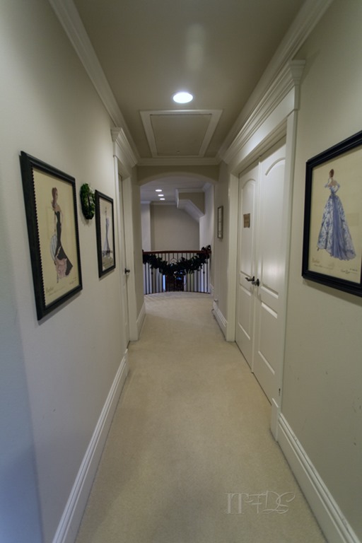 I love the holidays. I start decorating in November and am usually done by the first week of December to be ready for my Ladies Holiday Tea. This year, my ladies tea was followed immediately by weeks of dress rehearsals for my daughters Nutcracker ballet performances. So…I have been a little swamped. Now that my little ballerina has hung up her dancing shoes for the holiday, I can finally get back to the studio and some fun doll time. The doll room has gone through some changes in the past couple of months and I thought I would take the opportunity to share these fun changes. First off, the landing outside the doll room gets a holiday makeover….