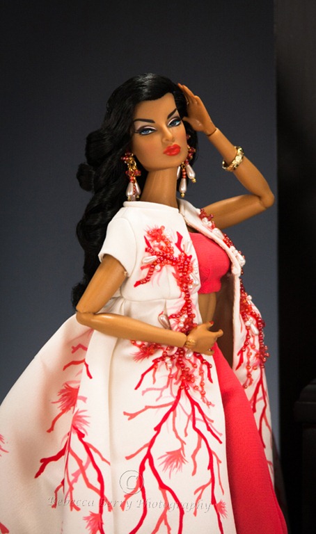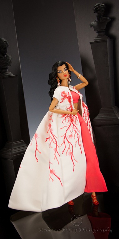 For the past couple of years, Integrity Toys has sponsored a contest during their annual convention. It is a fashion design challenge. The judges for the competition are Jason Wu and his design team from Integrity Toys. The person who wins the competition has their design produced by Integrity Toys and it is offered up for sale in the following years collection. Pretty cool right? This past years convention design competition winner was Julia Leroy a very talented designer and photographer. She holds a masters in design so it is no surprise that she would bring those skills into her collecting. A most excellent design Julia!!! Thank you so much for sharing your designing talent and creativity with the collecting community.