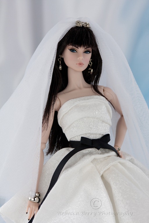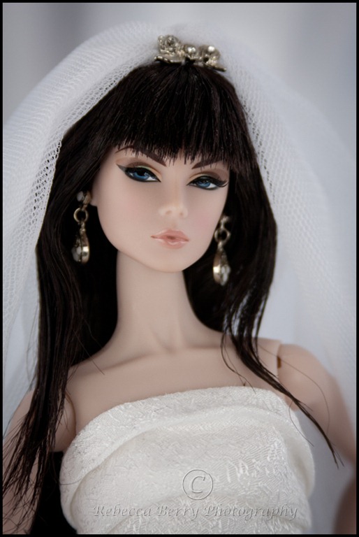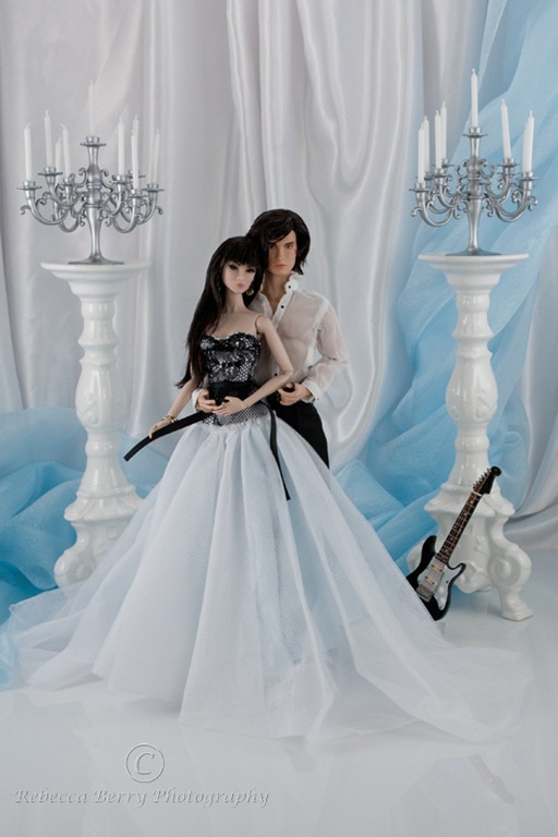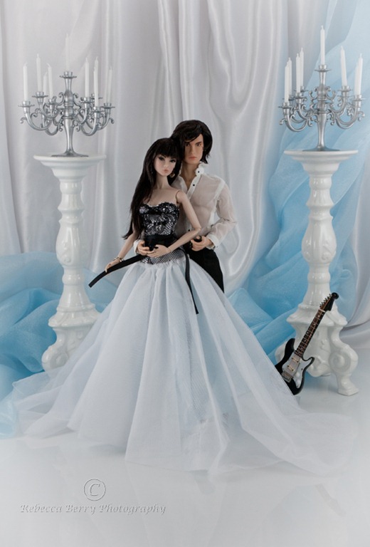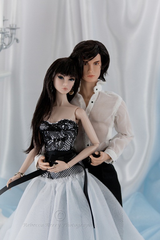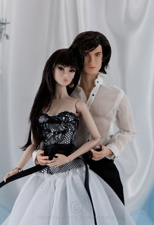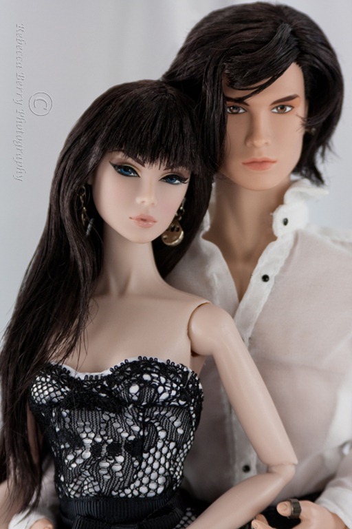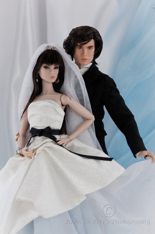 After the stress of Romain’s coiffure, I was ready to have some fun so I went all soft and dreamy with the set. I was thinking it would be fun to have all this softness in the background and all the edginess in the dolls out front. I have had a number of friends comment that they were surprised I ordered this set…they are not what I typically collect. I was surprised myself how much these dolls appealed to me. I have to say my camera and I are IN LOVE with this trio of dolls. I adore the versatility of Lilith’s gift set. She has so many different looks and I can’t wait to start redressing. Romain aka lettuce boy , hair not withstanding, is just way cool. Love the square jaw and angles on this guy. From a photography standpoint, there are lots of angles to work with on his face…he will have a different look depending on how you light him and from what angle…lots of options. I would imagine that Romain and Lilith would not have the traditional wedding even though that is what the set and these photos would suggest.