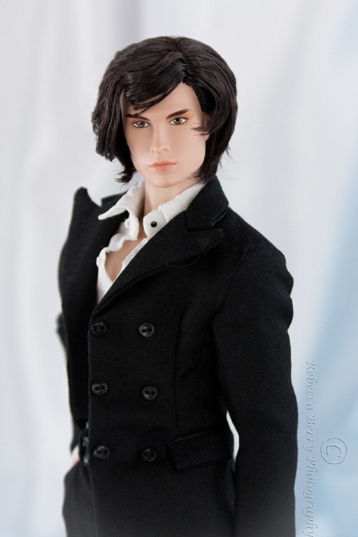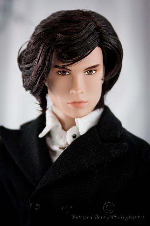 I keep looking at his name and hoping I am spelling it correctly. My husband has taken to calling him affectionately “lettuce boy”. He has a reason to gripe as I have been pulling my hair out trying to figure out how to style and photograph this guy and my husband has had to listen to it LOL. Let’s face the facts folks..he came out of the box with clumpy and uninspired hair. Certainly not what the promo’s promised but I prefer to look at it as a challenge…so like a dog with a bone…I set to work. I know I didn’t hit the mark of the look of the promo shots but I am happy with the doll and photos. I think he is handsome and love the face sculpt. Just wish I had a smidge more bang length and I am too much of a wimp to reroot.