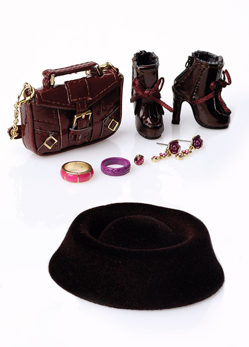 Love that they are including gloved hands with some of these. Also, it is amazing how little details just fill in the story. What do I love most about this navy and cream herringbone sheath? I love the little navy collar and the amazingly detailed designer belt in miniature. Don’t even get me started on the adorable shoes and bag. Also, this collection brings in a new set of sophisticated jewelry. Thanks I.T.!! Isha’s hair is braided according to Vaughn.