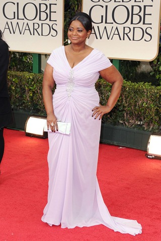 3. Octavia Spencer in Tadashi Shoji. I was definitely into the softer looks of pastels last evening. One of the best things about Octavia’s look was the gorgeous hair she had. Soooo lovely.![]()