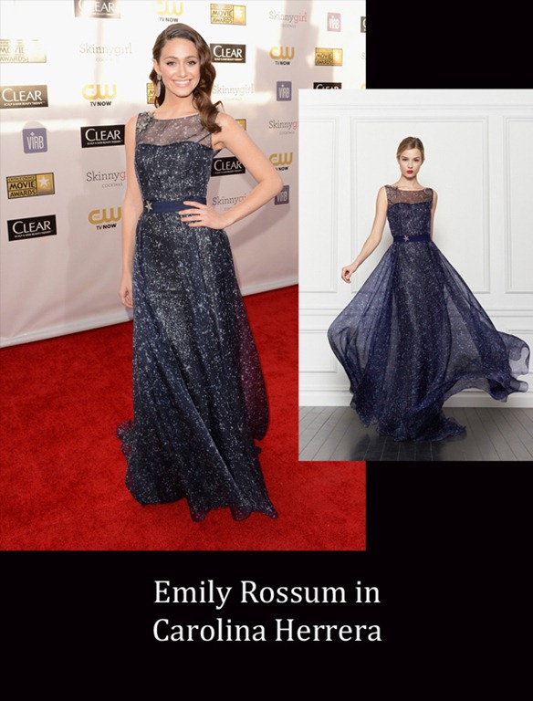 2) Emily Rossum at the Critics Choice Awards. So fresh and flowing. Perfect choice for her and the red carpet.![]()