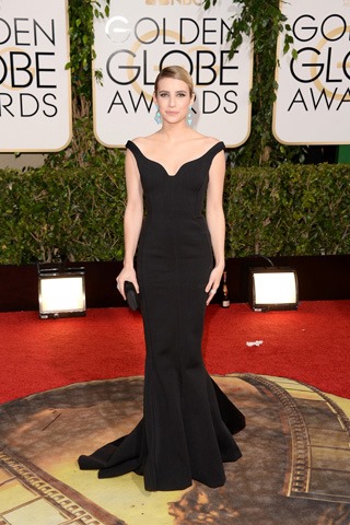 Emma Roberts in Lanvin. Loved this gorgeous and elegant look on her. It also looks like her stylist took a shorter look from the Lanvin 2014 spring RTW line and made a longer dress out of it. Winner!