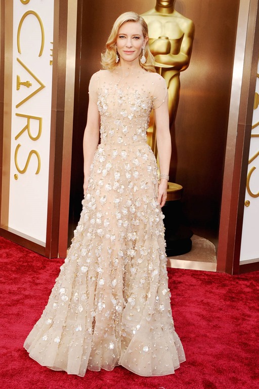 Kate Blanchett in Armani Privé. I liked the design alright but the color just washed her out. I adored her acceptance speech for the best actress win though. Strong female leads in film sells tickets Hollywood…hear it, learn it….live it.