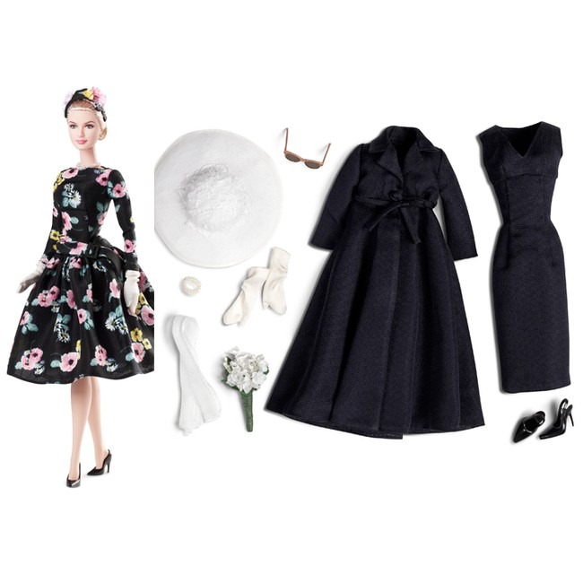 It looks like the photos that showed up on a retail site earlier this year were accurate. The Grace Kelly trousseau giftset will have the floral gown she met Prince Rainier for the first time in and the navy coat, dress and white hat that she wore on her honeymoon. I am really excited for this set to be available. It appears that the Hermès Kelly bag that was originally going to be with it will NOT be included. That is a bit of a bummer but oh well. I could understand that Hermès is most likely not willing to let that be copied even if it was in 1/6 scale. It would have been perfect though.