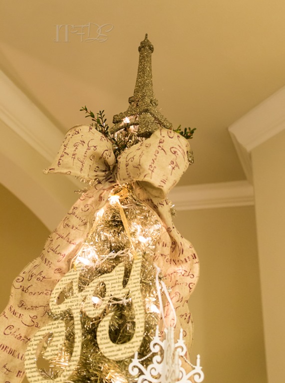Accessories: the box, macaron and bag were all done by me. The boxwood trees in planters were from Pier One. The bench was found on Ebay.
