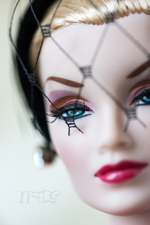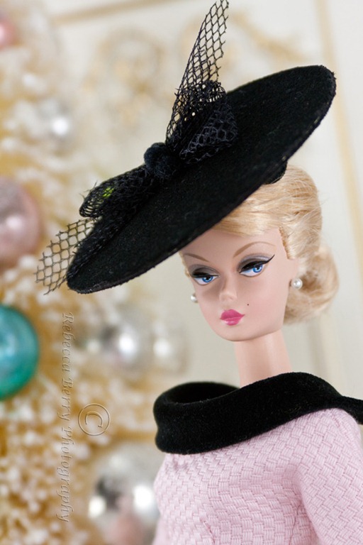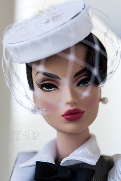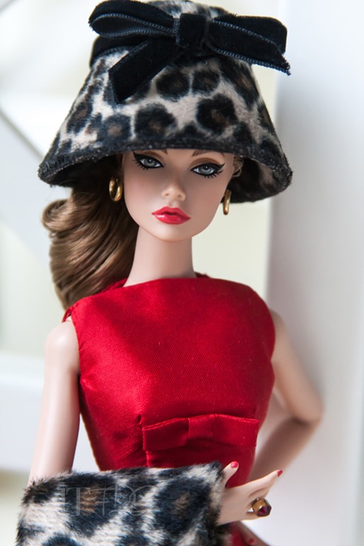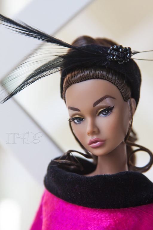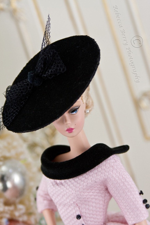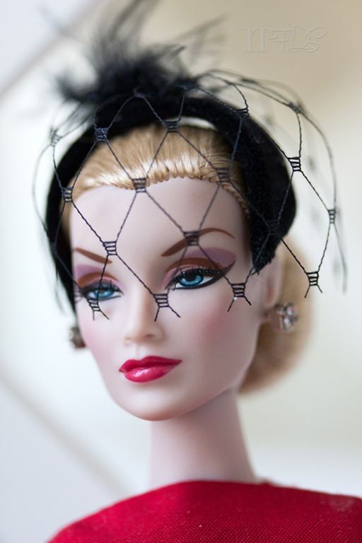 A change of models, couture and hats. I have had this hat for a year and on this model for almost as long but just have not gotten around to photographing her…bad me. I am a big fan of the Integrity Toys FR2 Fashion Royalty line. The high couture slimmer articulated body makes for great poseability. I just wish their feet were the same size as the others…it can be a bit of a pain to find the right pair of shoes because the choices are limited. Integrity Toys is trying, in my opinion, to make up for that a bit by gifting us with some amazing shoe sets at their convention every year. Now, if they could make a shoe set available to the WClub each year {hint, hint}, that would be fantastic!