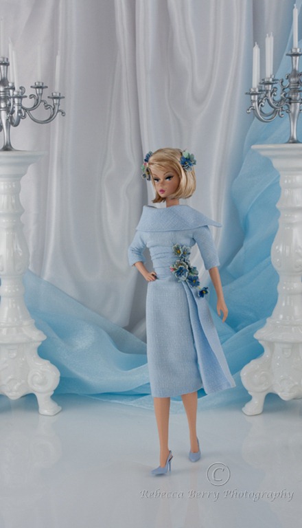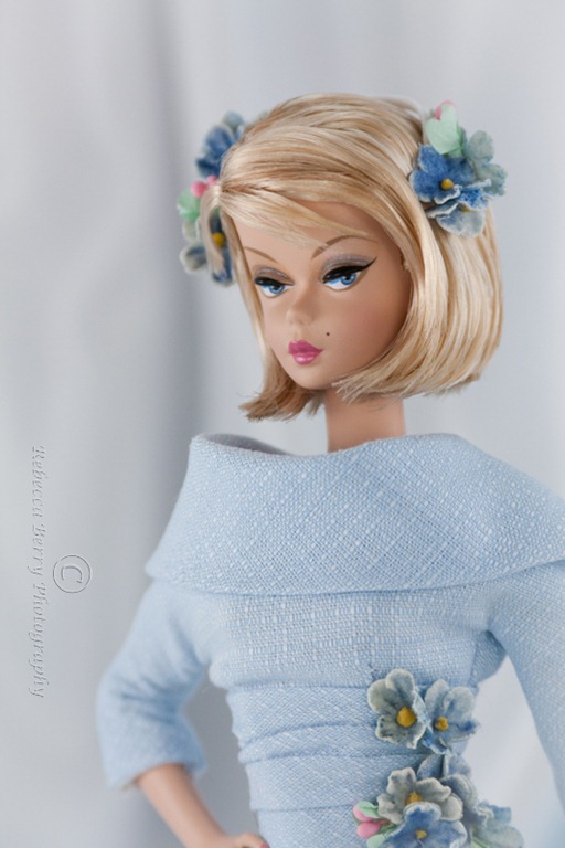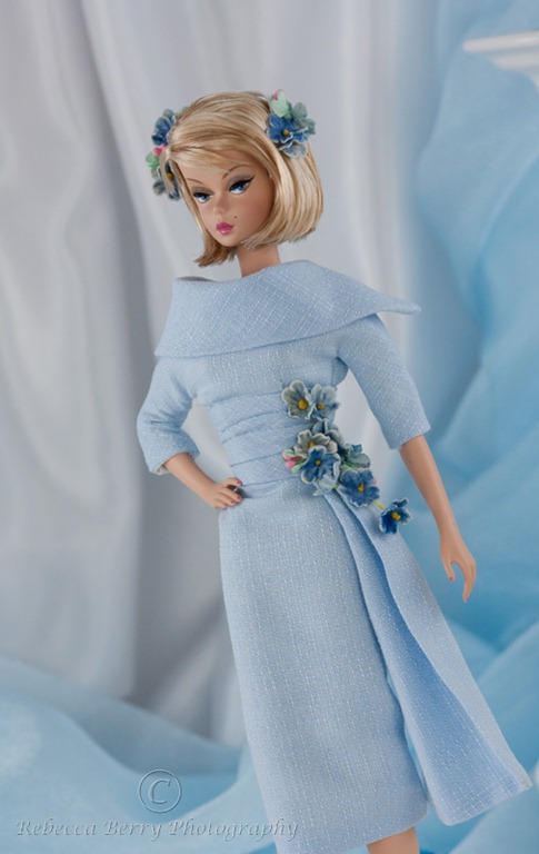 I feel like I have been neglecting my Silkstones for the past few months so it was time to bring em back and do it right. I joke with James Bogue all the time about the fact that I am such a “pinkophile” when it comes to his creations. If it’s in pink…I’m liking it. It came as a complete shock that I was drawn to a powder blue dress he had on his Etsy site and once I received it…I was in LOVE. I had the perfect lady to model it too. I had finally worked up the courage to cut and restyle a Preferably Pink Silkstone Barbie into the hairstyle I feel she should have originally came with…a shorter bob cut. I love it on her and I hope you do to.