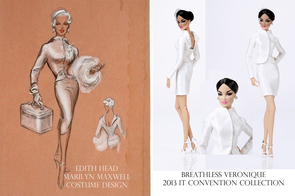 This suit is a favorite of mine. It is from the IT 2013 Premier Convention Collection. I was searching through some Edith Head sketches a couple months back and stumbled across what might have been the inspiration for this one.