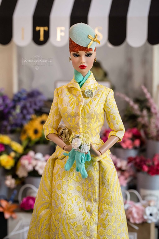 What’s the first thing a girl is going to do in Paris? SHOP! And you won’t just throw on a pair of jeans to go shopping in Paris…you need to do it in style. This black, yellow and white suit with hat and gloves ensures that Miss Poppy will indeed be shopping in style. The little bag ( reminiscent of an Hérmes Kelly bag) adds that fabulous finishing touch. I love the french twist hairstyle on her too. I am also noticing that there will be plenty of mix and match opportunities within this collection and the doll offered up as the Poppy Parker club doll. Thank you for that David!