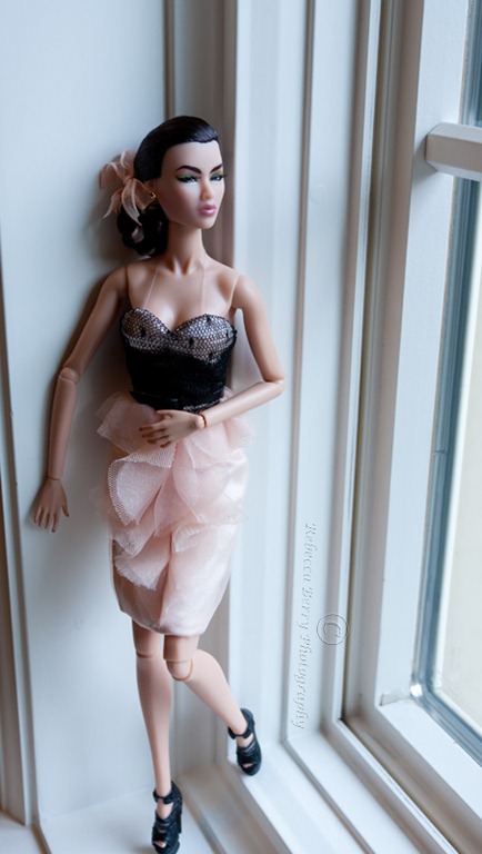 This lovely lady was an Integrity Toys IDEX and WClub lottery exclusive and thanks to one of the best doll buddies a girl can have, I was able to purchase one. Her face is porcelain delicate and the hairdo is unbelievably intricate. There are a number of peach ribbons running through the braided chignon. Beautiful! Her gown is pure Jason Wu. Yummy!