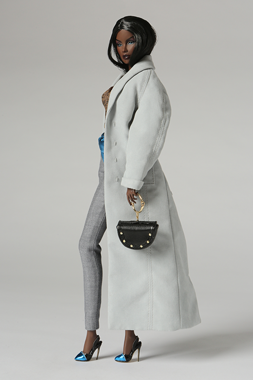YAASSSSSSSS! Now we are talkin’. I saw this caramel tressed Kyori and felt the wallet open ( a chorus of angels may have struck a chord as well). I love the soft pastel color pallet!! Not a whiff of black here. I love the embroidered leather ( ok not real leather but still) and the edgy refinement of it. It feels forward and still elegant. This feels like Jason influence to me and I like it. Also, whoever is heading up the jewelry and accessory department at IT…HATS OFF!! Here we have another new design in earrings and its fabulous! Love the grey purse and sunglasses. The lavender shoes are EVERYTHING! Me likes. I am hoping Dania’s grey gloved hands of last year’s club doll will match this one.