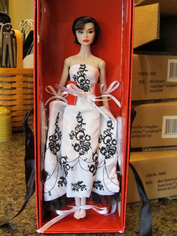I guess my biggest squeal moment was the announcement that they will be doing Poppy Parker™ as Sabrina®. This is an iconic fashion movie that put Audrey Hepburn and Hubert de Givenchy on the fashion map. You will see that Givenchy is never credited in the Sabrina movie as the designer of Ms. Hepburn’s exquisite wardrobe. Edith Head went on to receive the Oscar for this movie even though she did not design the female leads wardrobe. Let’s face it folks…it’s Sabrina’s wardrobe and the gamine eyes of Audrey Hepburn that carry that movie. I have tremendous respect for Ms. Head’s work but I never understood her willingness to accept the award for that movie. Not right. Most accounts state that Monsieur Givenchy was always an extreme gentleman about the whole thing and I guess in the long run…everyone knew those designs were his and not Ms. Heads work so the true credit went to the true owner. He should have received the award though. Monsieur Givenchy went on to work with Ms. Hepburn in Funny Face and Breakfast at Tiffany’s.
