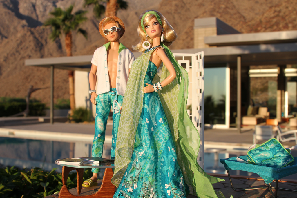 “Mattel Principal Designer, Jim Holmes, collaborated with Photographer Steven Henke, to create this stunning one-of-a-kind duo Barbie® and Ken® dolls for the Barbie Does Palm Springs Charity Event.