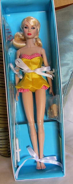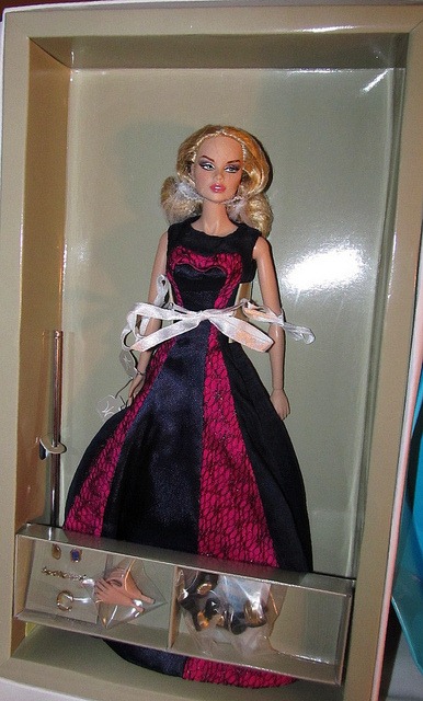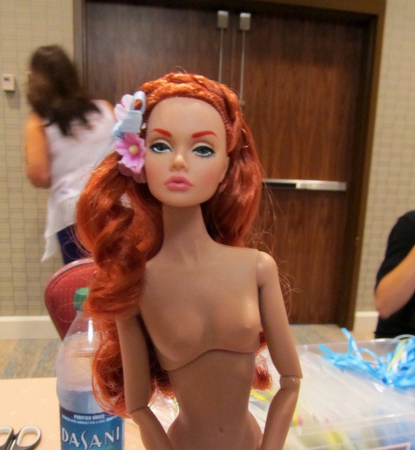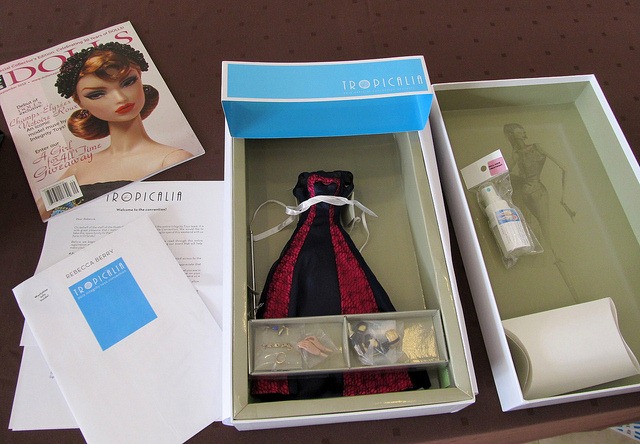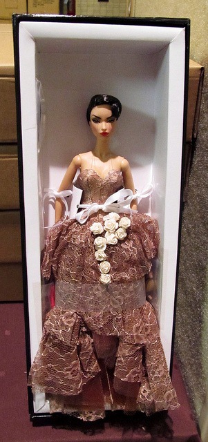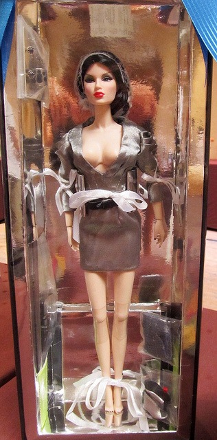 Now this was a curious convention doll. First of all, she looks more like what one would expect as a gift set convention doll …notice the three compartments that would have been perfect for the three meal events we had. I would have expected the Vanessa doll to be the convention doll. Makes me wonder if this was the original plan. This was definitely grounds for some speculative discussion in the hours after the final dinner. I am not sure about Imogen yet. In the box, she is just not inspiring me. I have, however, seen some stellar photos of her deboxed by Shuga (http://www.flickr.com/photos/shuga-shug/8038060307/in/contacts/) and they are showing me her potential.