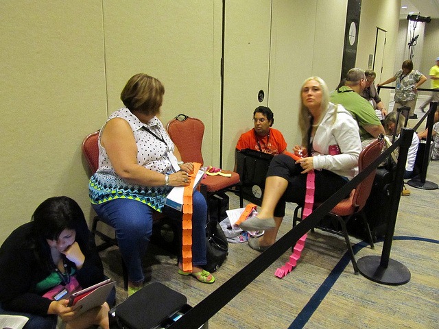 Some people are very productive with their time in line and they work on table gifts and fill out raffle tickets